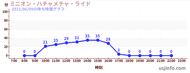 • ミニオン・ハチャメチャ・ライド$B$N(B2021年06月09日の待ち時間