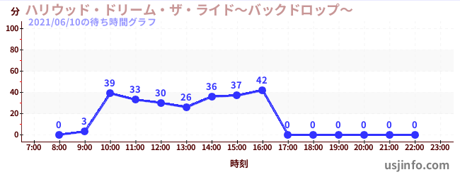 • ハリウッド・ドリーム・ザ・ライド〜バックドロップ〜$B$N(B2021年06月10日の待ち時間