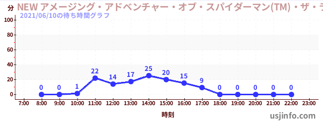 • NEW アメージング・アドベンチャー・オブ・スパイダーマン(TM)・ザ・ライド 4K3D$B$N(B2021年06月10日の待ち時間