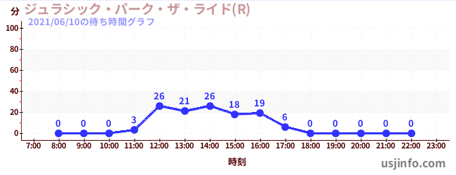 • ジュラシック・パーク・ザ・ライド(R)$B$N(B2021年06月10日の待ち時間