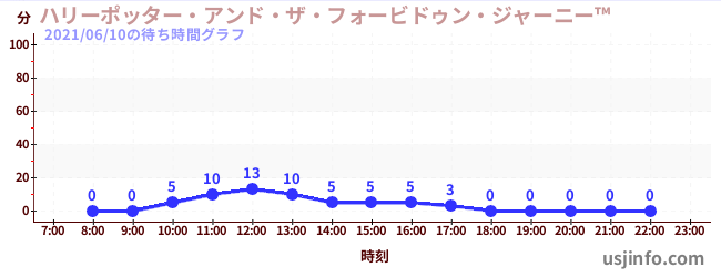 • ハリーポッター・アンド・ザ・フォービドゥン・ジャーニー™$B$N(B2021年06月10日の待ち時間