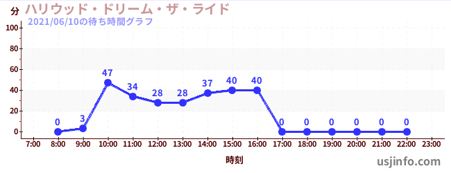 • ハリウッド・ドリーム・ザ・ライド$B$N(B2021年06月10日の待ち時間