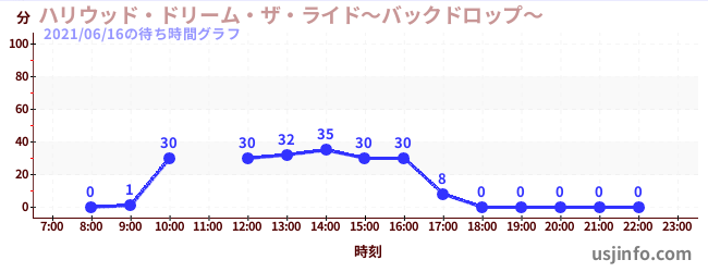 • ハリウッド・ドリーム・ザ・ライド〜バックドロップ〜$B$N(B2021年06月16日の待ち時間