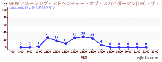 • NEW アメージング・アドベンチャー・オブ・スパイダーマン(TM)・ザ・ライド 4K3D$B$N(B2021年06月16日の待ち時間
