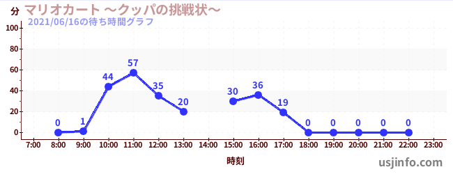 • マリオカート ~クッパの挑戦状~$B$N(B2021年06月16日の待ち時間