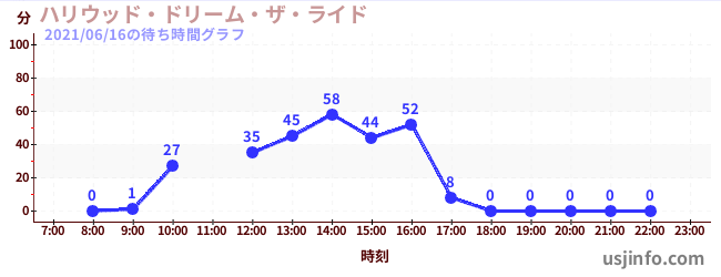 • ハリウッド・ドリーム・ザ・ライド$B$N(B2021年06月16日の待ち時間