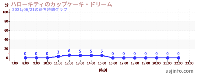 • ハローキティのカップケーキ・ドリーム$B$N(B2021年06月21日の待ち時間