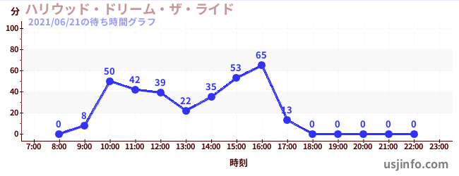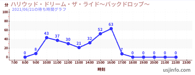 • ハリウッド・ドリーム・ザ・ライド〜バックドロップ〜$B$N(B2021年06月21日の待ち時間