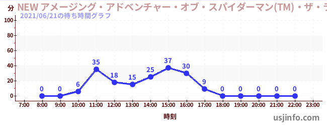 • NEW アメージング・アドベンチャー・オブ・スパイダーマン(TM)・ザ・ライド 4K3D$B$N(B2021年06月21日の待ち時間