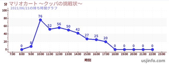 • マリオカート ~クッパの挑戦状~$B$N(B2021年06月21日の待ち時間