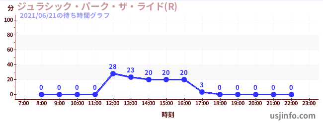 • ジュラシック・パーク・ザ・ライド(R)$B$N(B2021年06月21日の待ち時間