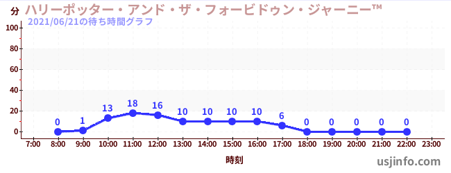 • ハリーポッター・アンド・ザ・フォービドゥン・ジャーニー™$B$N(B2021年06月21日の待ち時間