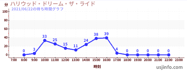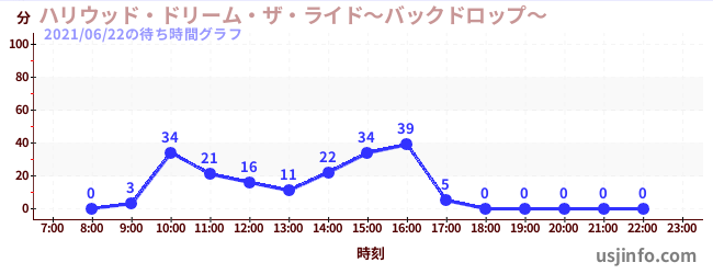 • ハリウッド・ドリーム・ザ・ライド〜バックドロップ〜$B$N(B2021年06月22日の待ち時間