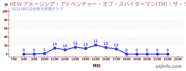 • NEW アメージング・アドベンチャー・オブ・スパイダーマン(TM)・ザ・ライド 4K3D$B$N(B2021年06月22日の待ち時間