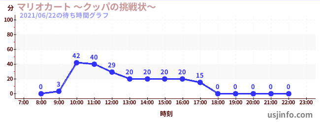 • マリオカート ~クッパの挑戦状~$B$N(B2021年06月22日の待ち時間