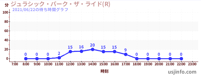 • ジュラシック・パーク・ザ・ライド(R)$B$N(B2021年06月22日の待ち時間