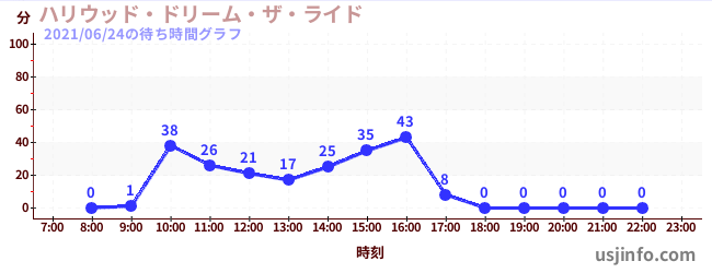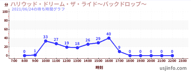 • ハリウッド・ドリーム・ザ・ライド〜バックドロップ〜$B$N(B2021年06月24日の待ち時間