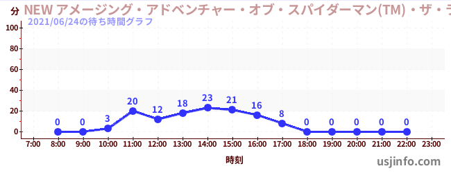 • NEW アメージング・アドベンチャー・オブ・スパイダーマン(TM)・ザ・ライド 4K3D$B$N(B2021年06月24日の待ち時間