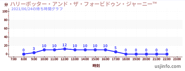 • ハリーポッター・アンド・ザ・フォービドゥン・ジャーニー™$B$N(B2021年06月24日の待ち時間