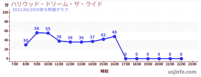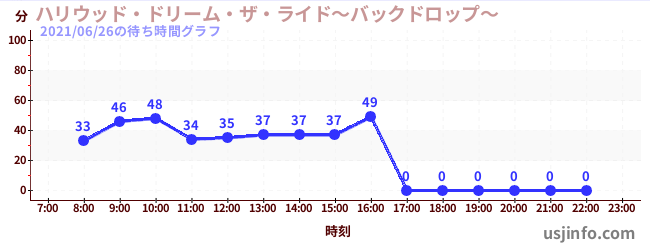 • ハリウッド・ドリーム・ザ・ライド〜バックドロップ〜$B$N(B2021年06月26日の待ち時間