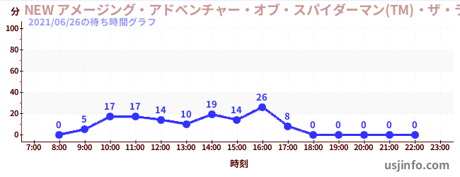 • NEW アメージング・アドベンチャー・オブ・スパイダーマン(TM)・ザ・ライド 4K3D$B$N(B2021年06月26日の待ち時間