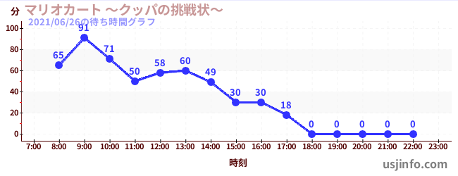 • マリオカート ~クッパの挑戦状~$B$N(B2021年06月26日の待ち時間