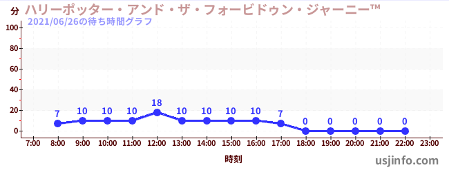 • ハリーポッター・アンド・ザ・フォービドゥン・ジャーニー™$B$N(B2021年06月26日の待ち時間