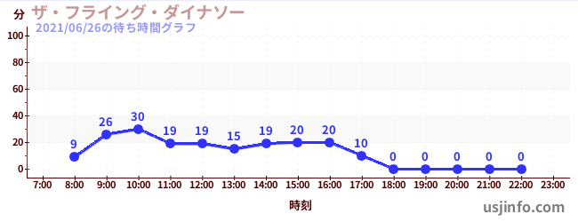 • ザ・フライング・ダイナソー$B$N(B2021年06月26日の待ち時間