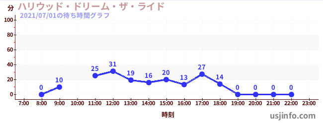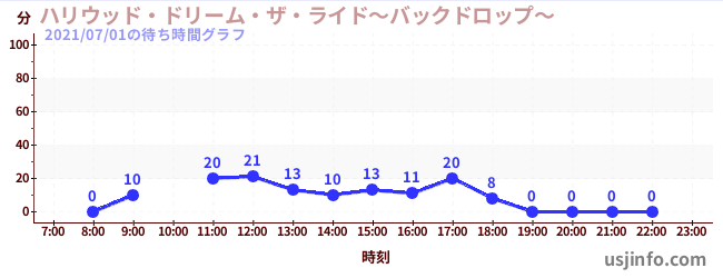• ハリウッド・ドリーム・ザ・ライド〜バックドロップ〜$B$N(B2021年07月01日の待ち時間