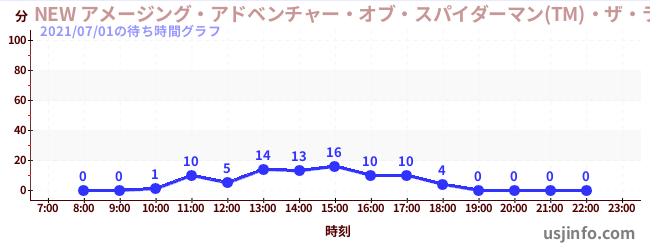 • NEW アメージング・アドベンチャー・オブ・スパイダーマン(TM)・ザ・ライド 4K3D$B$N(B2021年07月01日の待ち時間
