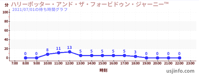 • ハリーポッター・アンド・ザ・フォービドゥン・ジャーニー™$B$N(B2021年07月01日の待ち時間