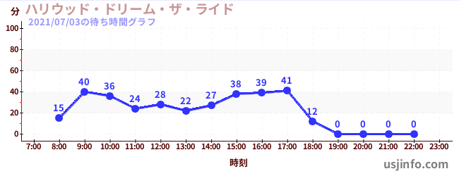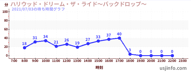 • ハリウッド・ドリーム・ザ・ライド〜バックドロップ〜$B$N(B2021年07月03日の待ち時間