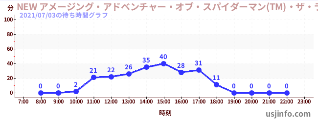 • NEW アメージング・アドベンチャー・オブ・スパイダーマン(TM)・ザ・ライド 4K3D$B$N(B2021年07月03日の待ち時間