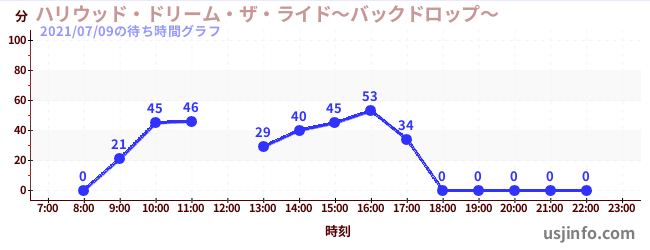 • ハリウッド・ドリーム・ザ・ライド〜バックドロップ〜$B$N(B2021年07月09日の待ち時間