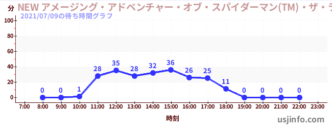 • NEW アメージング・アドベンチャー・オブ・スパイダーマン(TM)・ザ・ライド 4K3D$B$N(B2021年07月09日の待ち時間