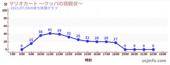 • マリオカート ~クッパの挑戦状~$B$N(B2021年07月09日の待ち時間