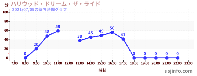 • ハリウッド・ドリーム・ザ・ライド$B$N(B2021年07月09日の待ち時間