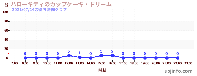 • ハローキティのカップケーキ・ドリーム$B$N(B2021年07月14日の待ち時間