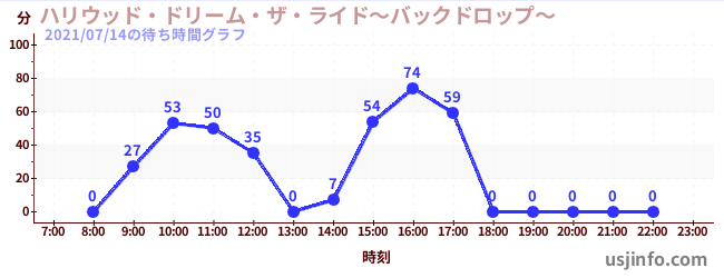 • ハリウッド・ドリーム・ザ・ライド〜バックドロップ〜$B$N(B2021年07月14日の待ち時間