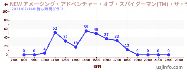 • NEW アメージング・アドベンチャー・オブ・スパイダーマン(TM)・ザ・ライド 4K3D$B$N(B2021年07月14日の待ち時間