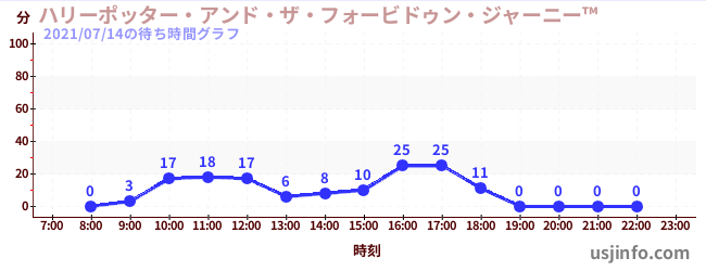 • ハリーポッター・アンド・ザ・フォービドゥン・ジャーニー™$B$N(B2021年07月14日の待ち時間