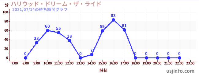 • ハリウッド・ドリーム・ザ・ライド$B$N(B2021年07月14日の待ち時間