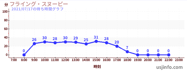 • フライング・スヌーピー$B$N(B2021年07月17日の待ち時間