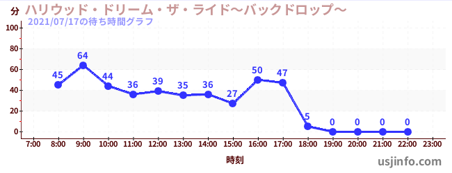 • ハリウッド・ドリーム・ザ・ライド〜バックドロップ〜$B$N(B2021年07月17日の待ち時間