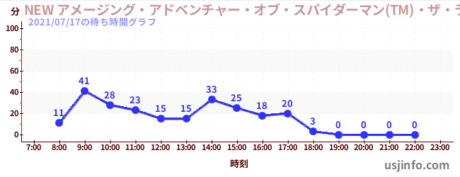 • NEW アメージング・アドベンチャー・オブ・スパイダーマン(TM)・ザ・ライド 4K3D$B$N(B2021年07月17日の待ち時間