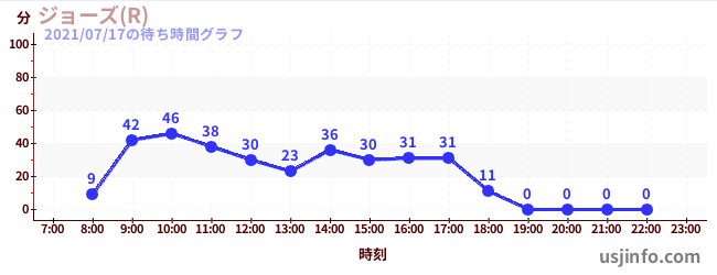 • ジョーズ(R)$B$N(B2021年07月17日の待ち時間