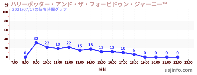 • ハリーポッター・アンド・ザ・フォービドゥン・ジャーニー™$B$N(B2021年07月17日の待ち時間