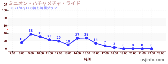 • ミニオン・ハチャメチャ・ライド$B$N(B2021年07月17日の待ち時間