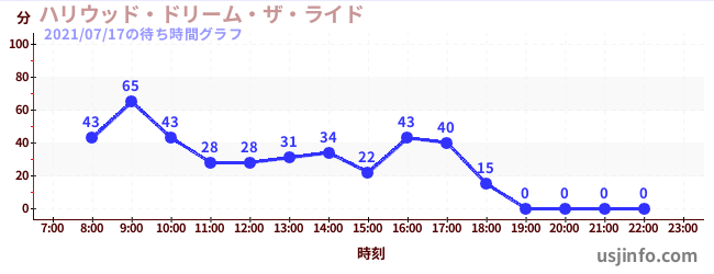 • ハリウッド・ドリーム・ザ・ライド$B$N(B2021年07月17日の待ち時間