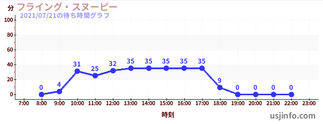 • フライング・スヌーピー$B$N(B2021年07月21日の待ち時間